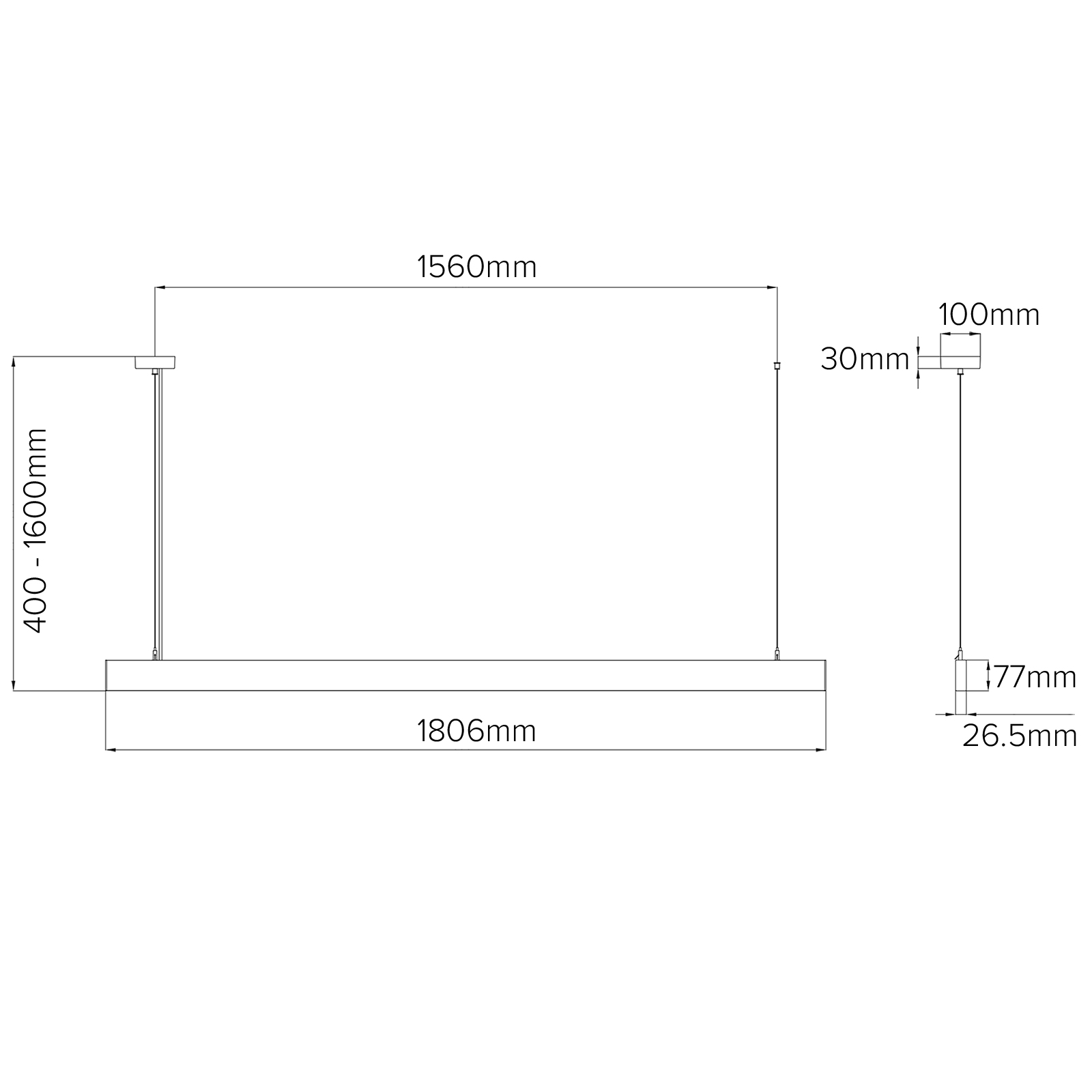 Elite 26 Series Pendant 1800mm 3000K 40° Black Non-dimmable